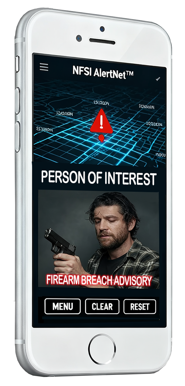 NFSI AlertNet™ will be a free mobile app, currently in development, that instantly warns individuals and communities of nearby firearm breaches, acting as a real-time early-warning network for gun-related threats. Developed by the National Firearm Safety Initiative (NFSI) in co-sponsorship with Sound Sentinel Corporation (SSC), NFSI AlertNet links directly with (SSC) Arms Recovery Unit Device (ARUD) to broadcast verified firearm breach advisories specific to each community.